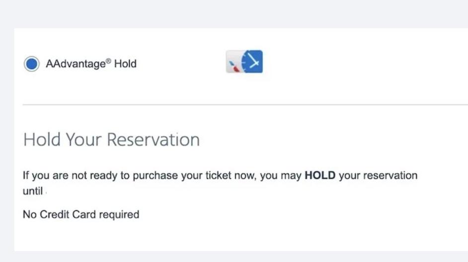 Quando a gente se depara com uma oferta muito boa, como a que apareceu recentemente a 13.000 pontos para vários destinos dos Estados Unidos pela American Airlines, quem assina nosso Alerta viu em primeira mão, bate o desespero de não perder, e as vezes fazemos uma emissão em uma data que não faz sentido pra gente. Ok, temos 24 horas pra cancelar sem custo, a maioria já sabe, mas e quando 24 horas não é suficiente para esta decisão? A American Airlines permite colocar "em espera", - on hold - por 5 dias. Portanto se você comprar a passagem dia 26 e colocar em espera, vai ter até o dia 31 para pagar pela reserva. Ao fazer o hold você já terá um localizador, só vai faltar pagar a taxa de embarque. Basta escolher esta opção na tela final da reserva, onde escolhe como pagar as taxas.